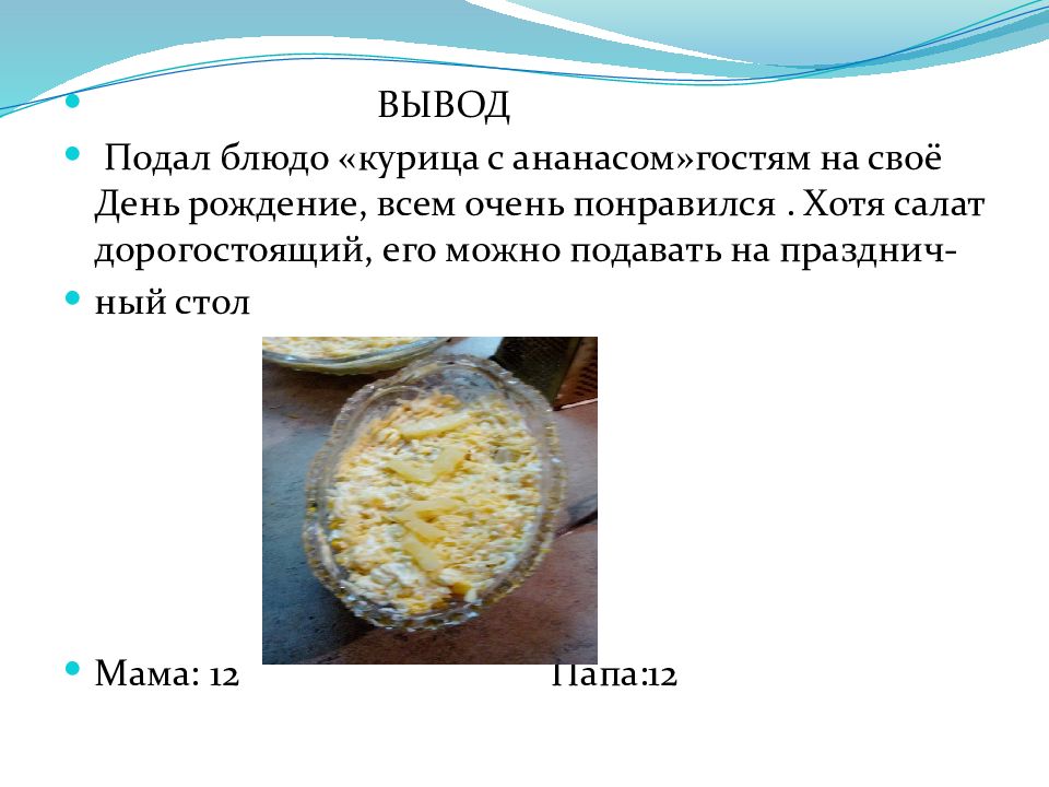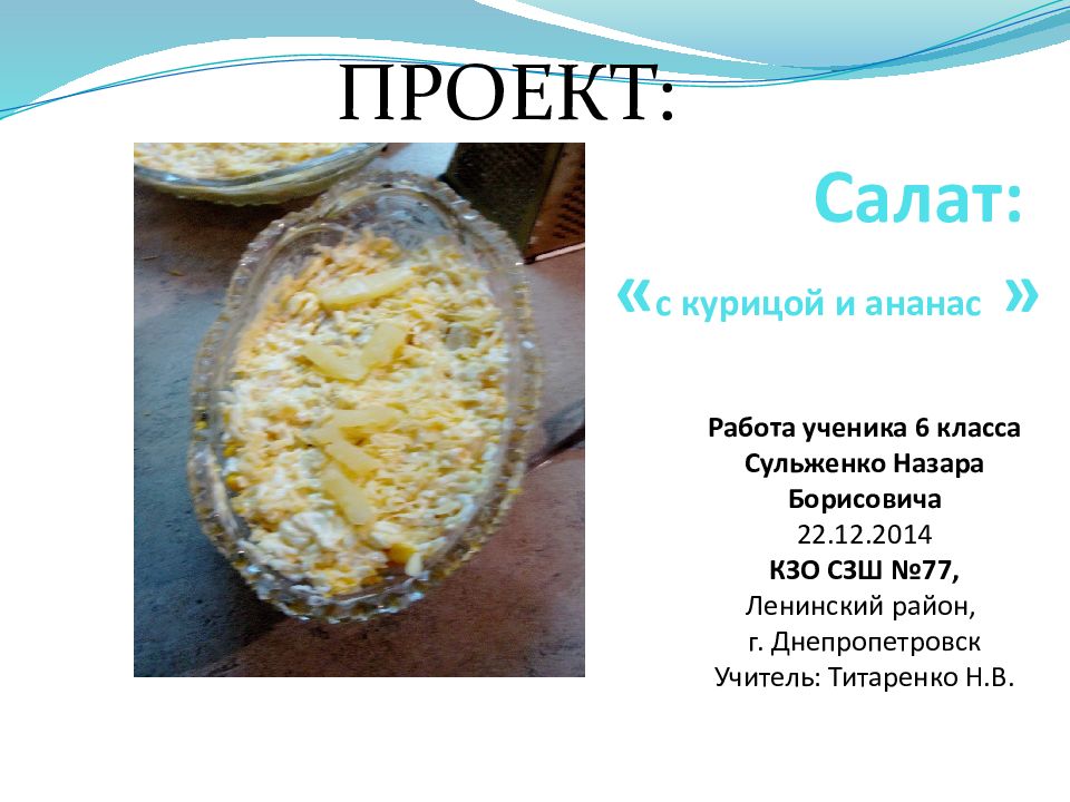 Первый слайд презентации: Салат: « с курицой и ананас »