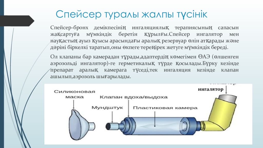 Сальбутамол препараты Дозалануы мен қабылдау Спейсер туралы жалпы түсінік Сальбутамолды спейсер арқылы қолдану техникасы