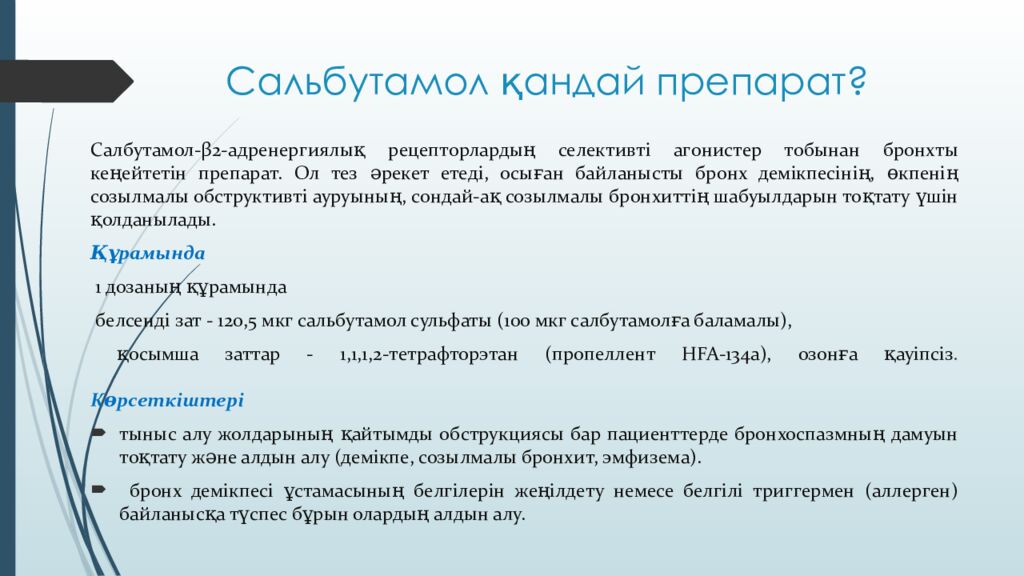 Слайд 3: Сальбутамол қандай препарат?