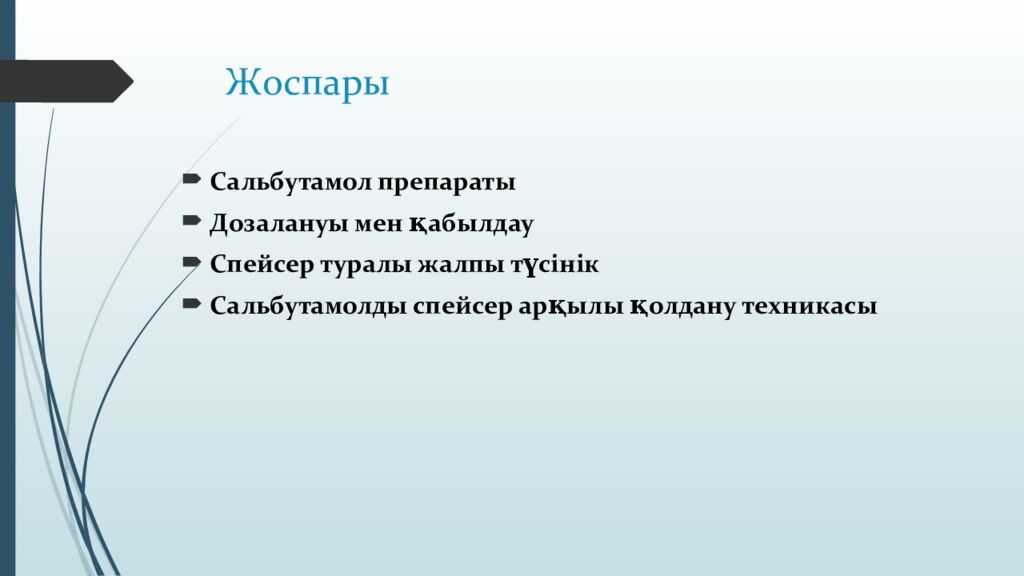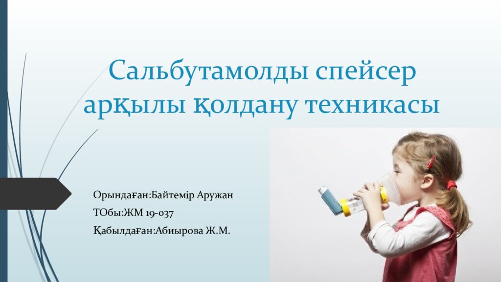 Первый слайд презентации: Сальбутамолды спейсер арқылы қолдану техникасы