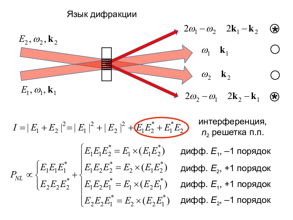 м * * Язык дифракции интерференция, n 2 решетка п.п. дифф. Е 1, –1 порядок дифф. Е 2, +1 порядок дифф. Е 1, +1 порядок дифф. Е 2, –1 порядок