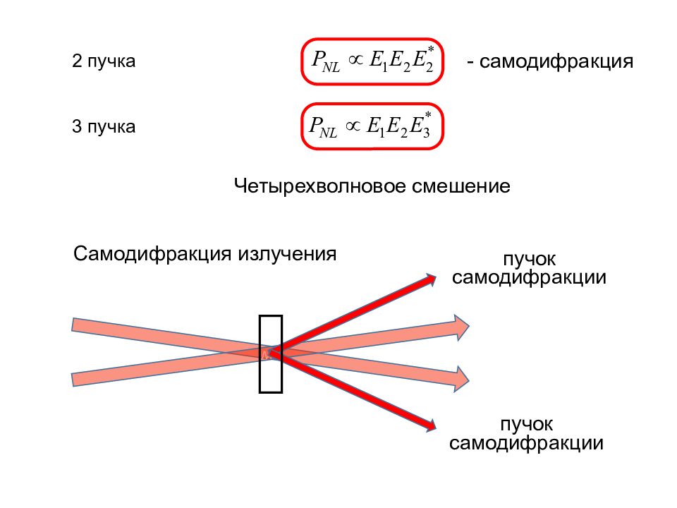 2 пучка 3 пучка Четырехволновое смешение - самодифракция Самодифракция излучения м пучок самодифракции пучок самодифракции
