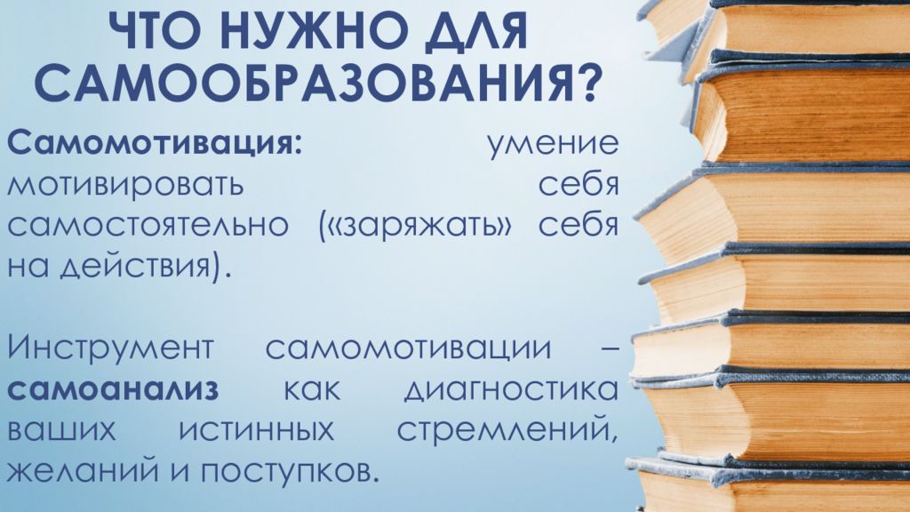 Слайд 15: ЧТО НУЖНО ДЛЯ САМООБРАЗОВАНИЯ?