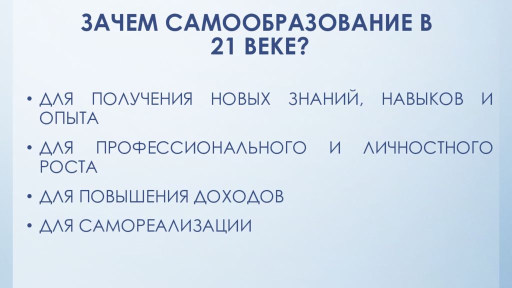 Слайд 7: ЗАЧЕМ САМООБРАЗОВАНИЕ В 21 ВЕКЕ?
