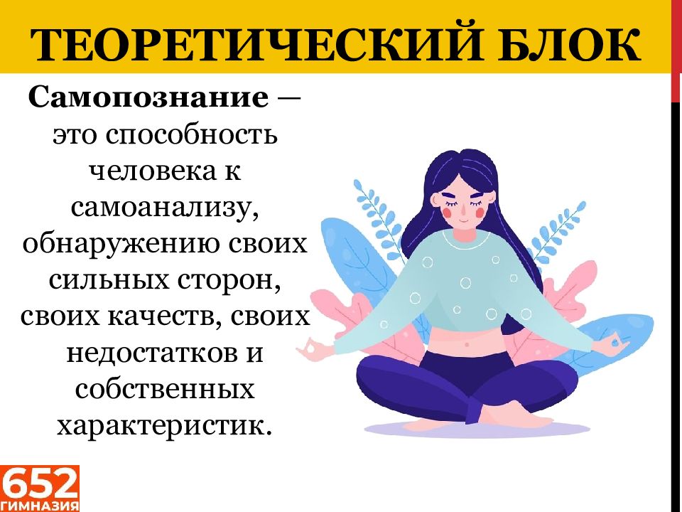 Самопознание — это способность человека к самоанализу, обнаружению своих сильных сторон, своих качеств, своих недостатков и собственных характеристик.