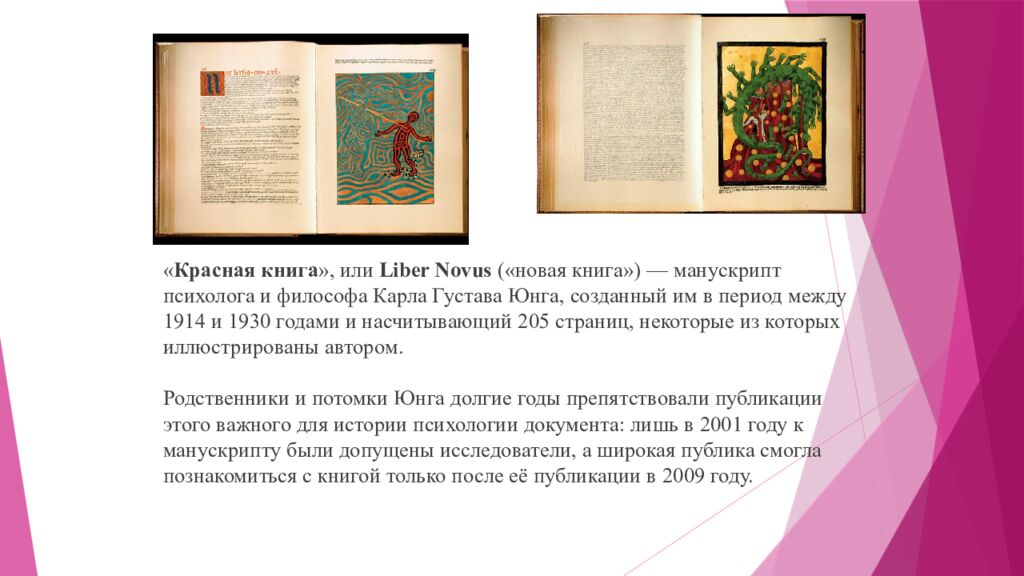 « Красная книга », или Liber Novus («новая книга») — манускрипт психолога и философа Карла Густава Юнга, созданный им в период между 1914 и 1930 годами и насчитывающий 205 страниц, некоторые из которых иллюстрированы автором. Родственники и потомки Юнга долгие годы препятствовали публикации этого важного для истории психологии документа: лишь в 2001 году к манускрипту были допущены исследователи, а широкая публика смогла познакомиться с книгой только после её публикации в 2009 году.