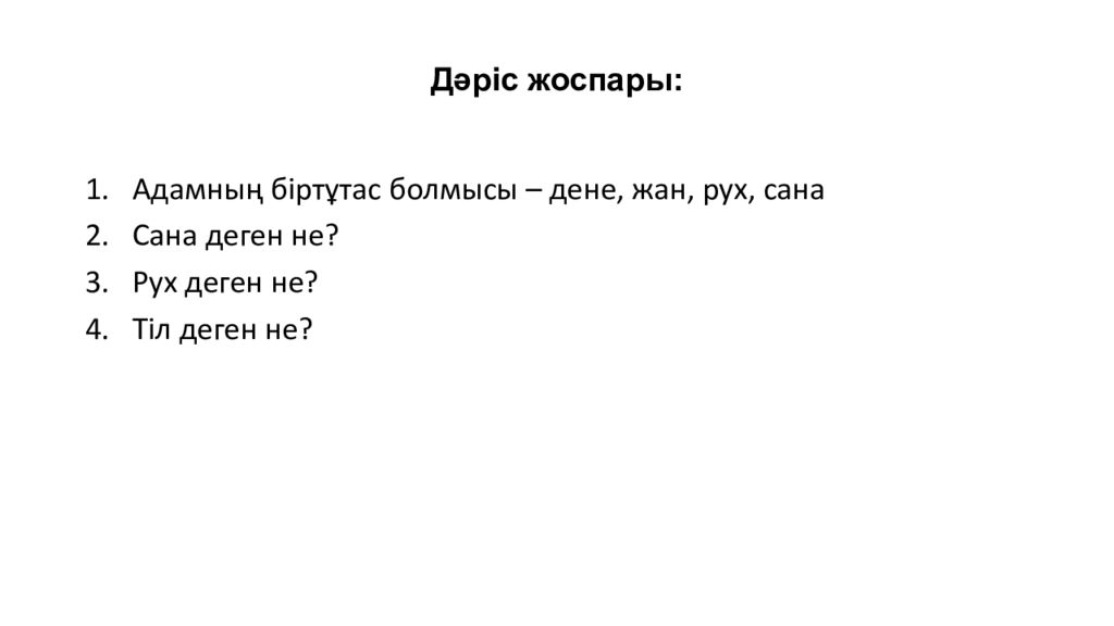 Адамның біртұтас болмысы – дене, жан, рух, сана Сана деген не? Рух деген не? Тіл деген не?