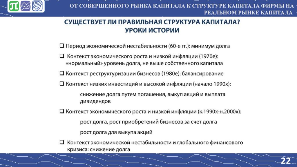 ОТ СОВЕРШЕННОГО РЫНКА КАПИТАЛА К СТРУКТУРЕ КАПИТАЛА ФИРМЫ НА РЕАЛЬНОМ РЫНКЕ КАПИТАЛА 2 2