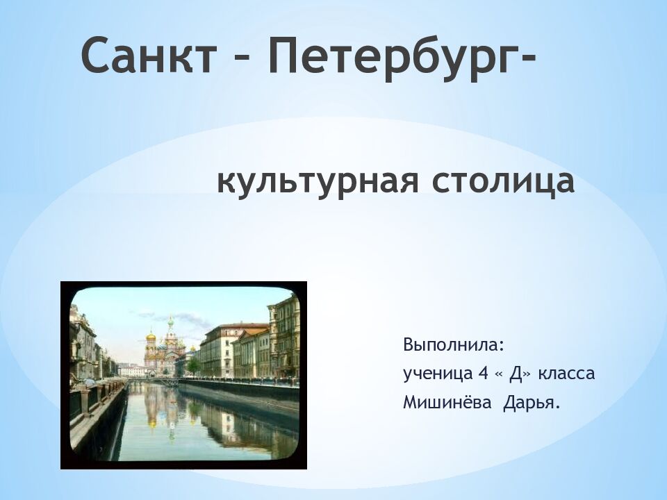 Выполнила: у ченица 4 « Д» класса Мишинёва Дарья. Санкт – Петербург- культурная столица