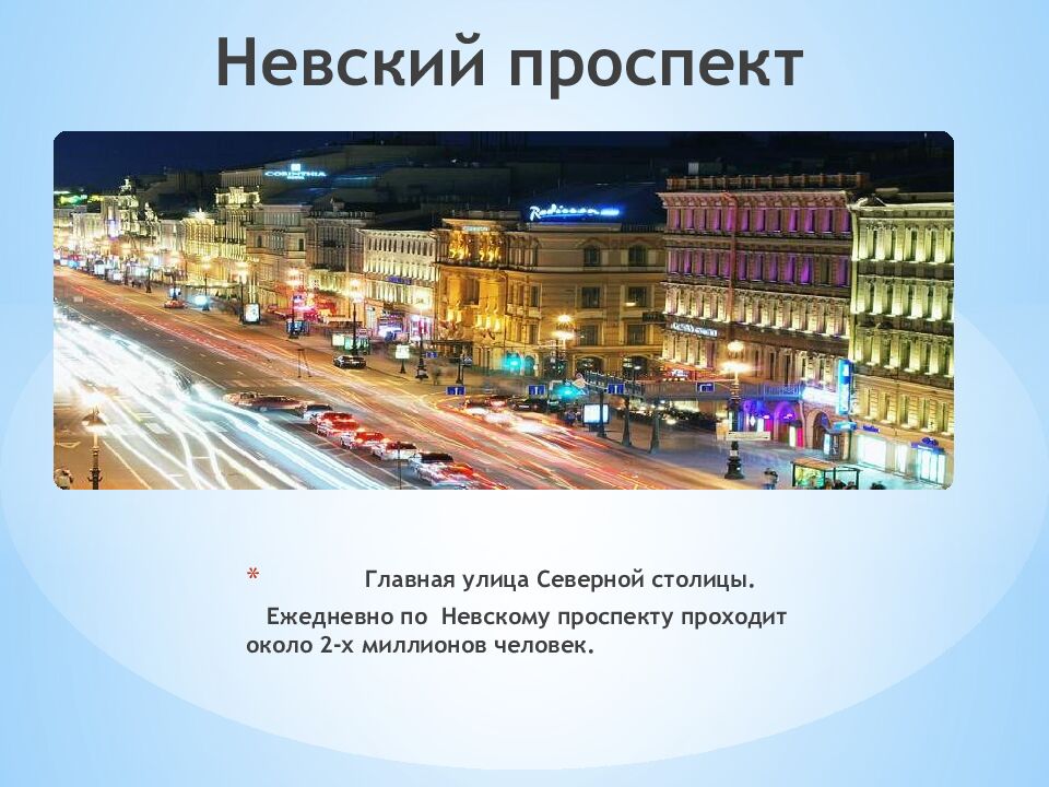 Главная улица Северной столицы. Ежедневно по Невскому проспекту проходит около 2-х миллионов человек. Невский проспект