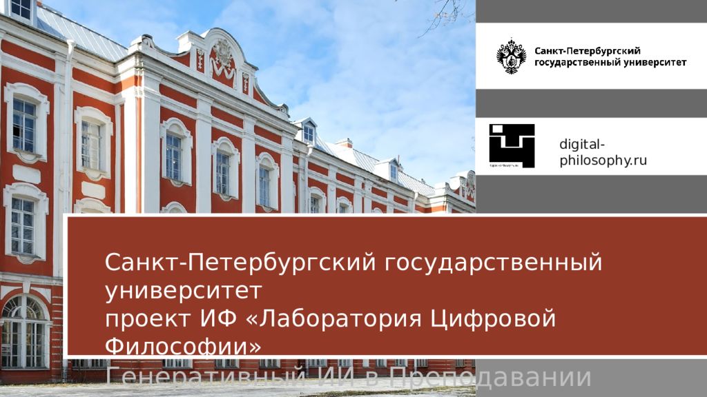 Санкт-Петербургский государственный университет проект ИФ «Лаборатория Цифровой Философии» Генеративный ИИ в Преподавании Философии digital-philosophy.ru