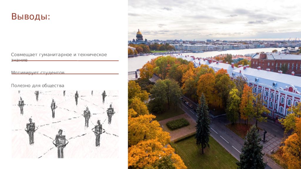 Совмещает гуманитарное и техническое знание Мотивирует студентов Полезно для общества Выводы: