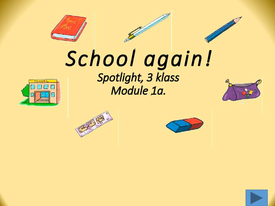 Первый слайд презентации: School again! Spotlight, 3 klass Module 1a