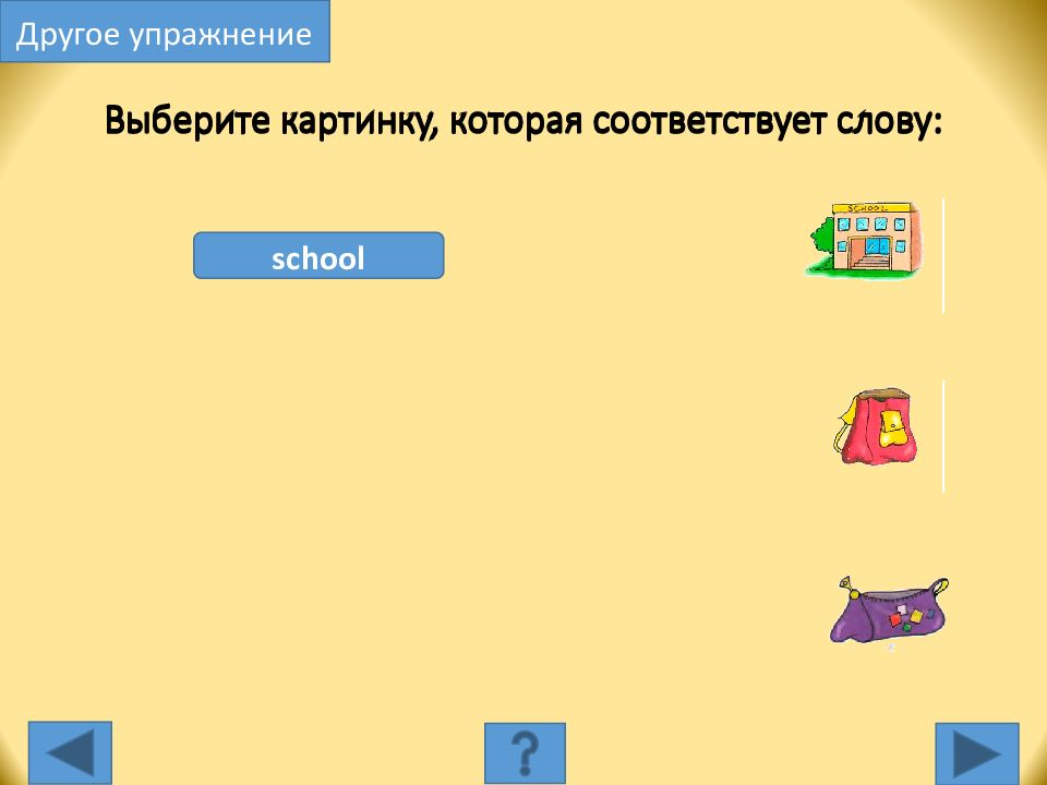 school Выберите картинку, которая соответствует слову: Другое упражнение