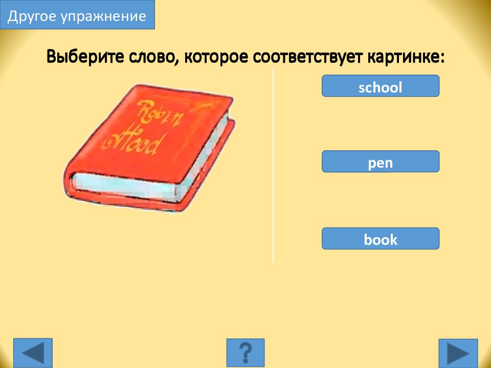 school pen book Выберите слово, которое соответствует картинке: Другое упражнение