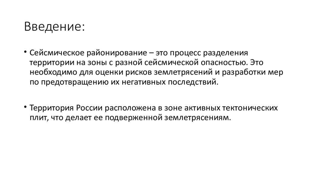 Сейсмическое районирование – это процесс разделения территории на зоны с разной сейсмической опасностью. Это необходимо для оценки рисков землетрясений и разработки мер по предотвращению их негативных последствий. Территория России расположена в зоне активных тектонических плит, что делает ее подверженной землетрясениям.