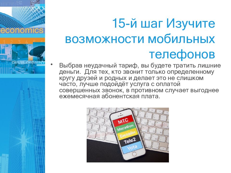 Слайд 16: 15-й шаг Изучите возможности мобильных телефонов