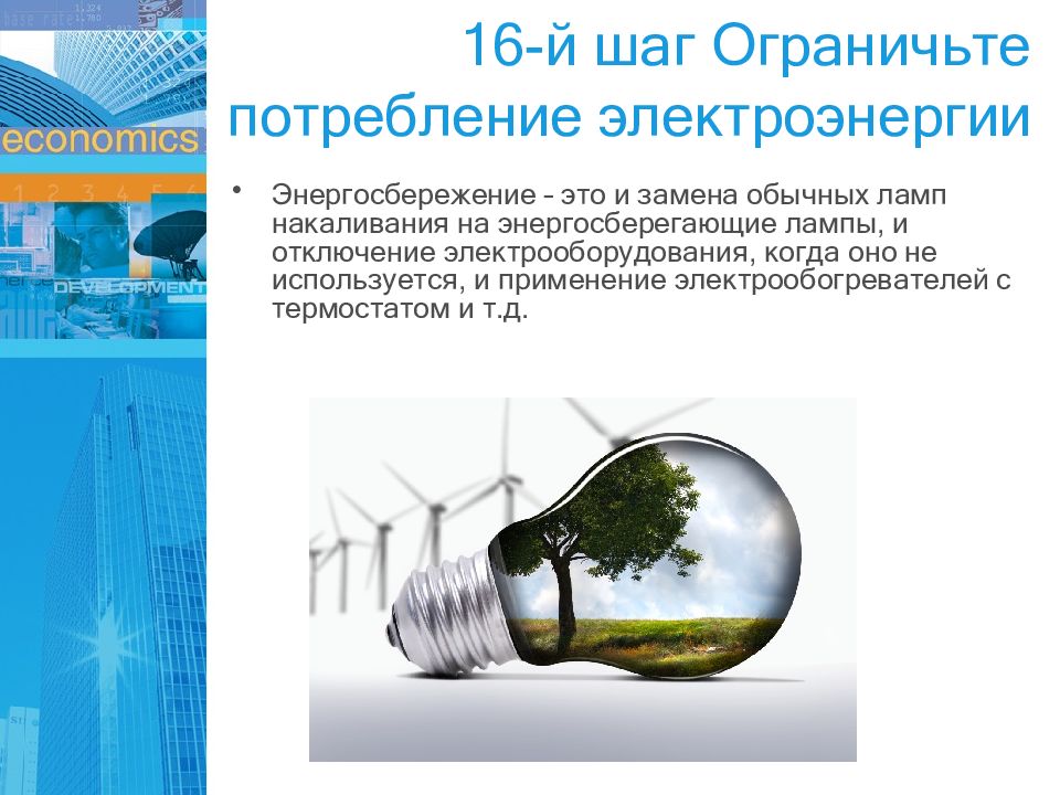 Слайд 17: 16-й шаг Ограничьте потребление электроэнергии