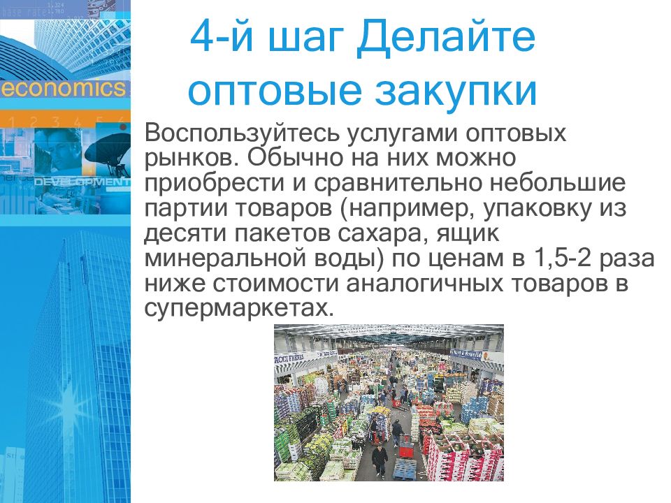 Слайд 8: 4-й шаг Делайте оптовые закупки