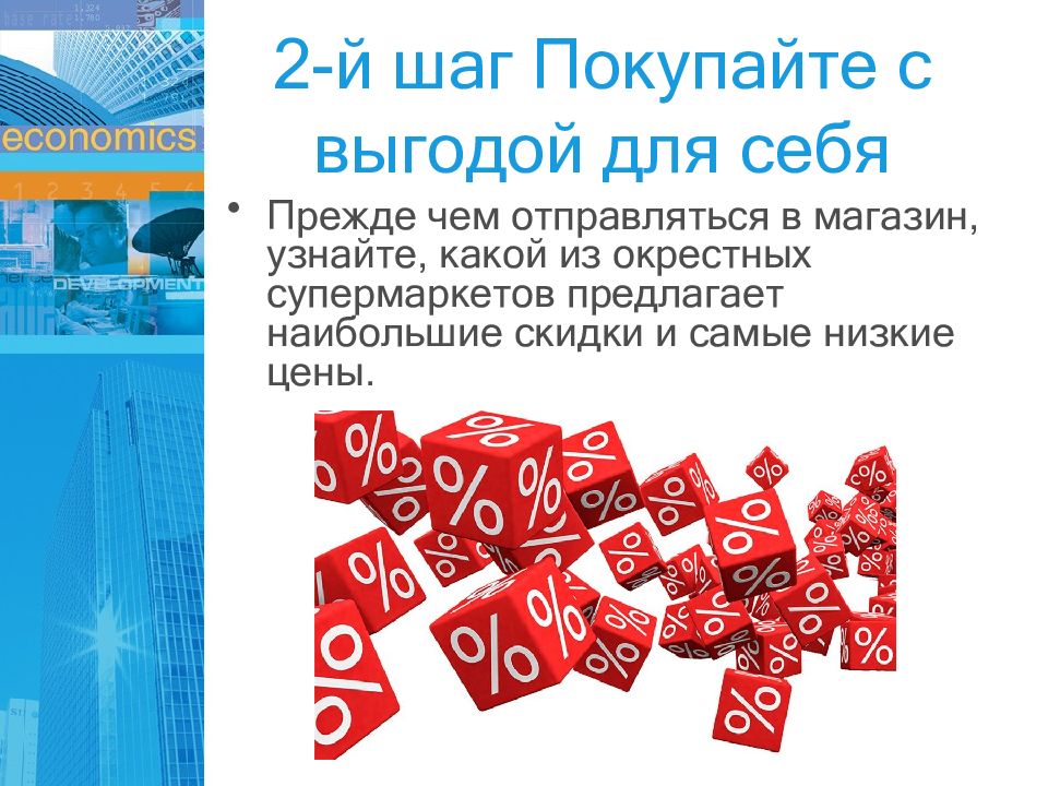 Слайд 6: 2-й шаг Покупайте с выгодой для себя