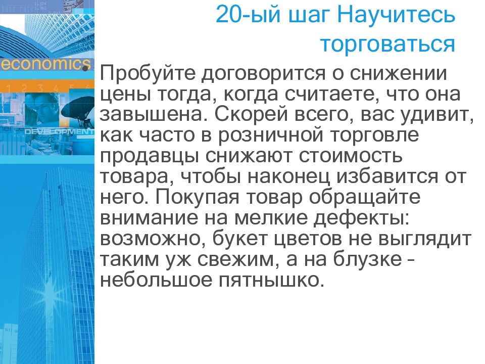 Слайд 21: 20-ый шаг Научитесь торговаться