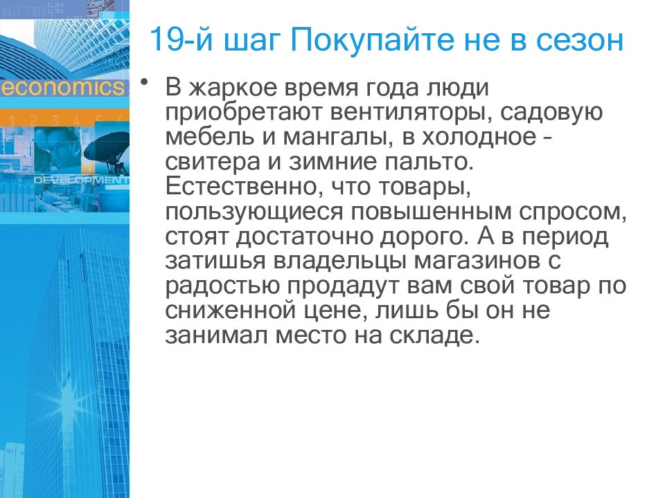 Слайд 20: 19-й шаг Покупайте не в сезон