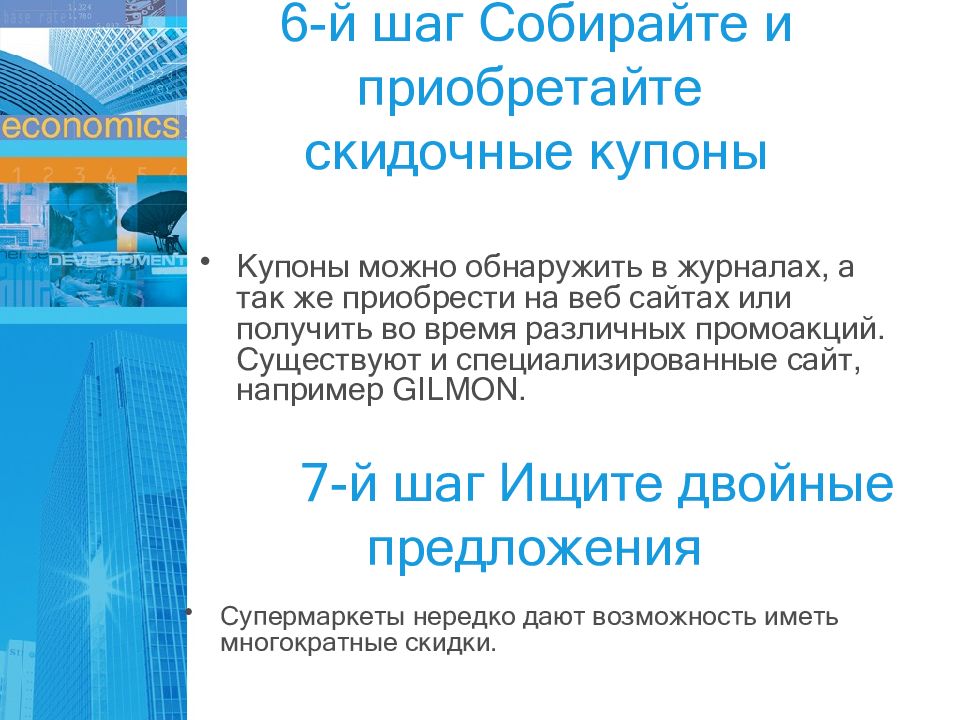 Слайд 10: 6-й шаг Собирайте и приобретайте скидочные купоны