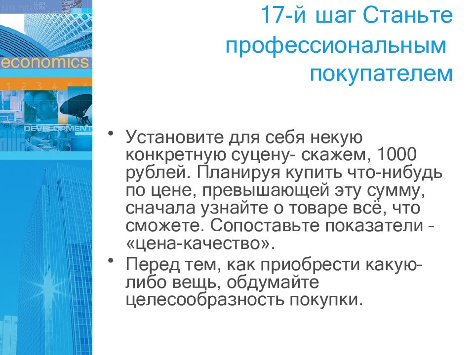 Слайд 18: 17-й шаг Станьте профессиональным покупателем