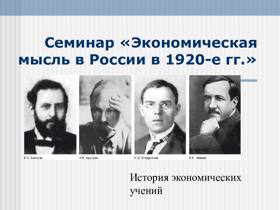 Первый слайд презентации: Семинар «Экономическая мысль в России в 1920-е гг.»