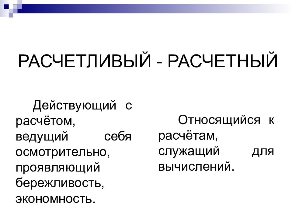 Слайд 10: РАСЧЕТЛИВЫЙ - РАСЧЕТНЫЙ