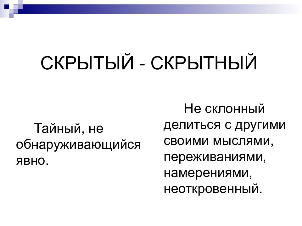 Слайд 17: СКРЫТЫЙ - СКРЫТНЫЙ