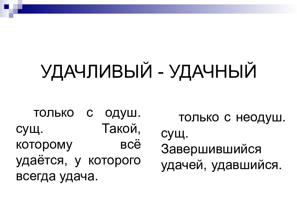 Слайд 11: УДАЧЛИВЫЙ - УДАЧНЫЙ