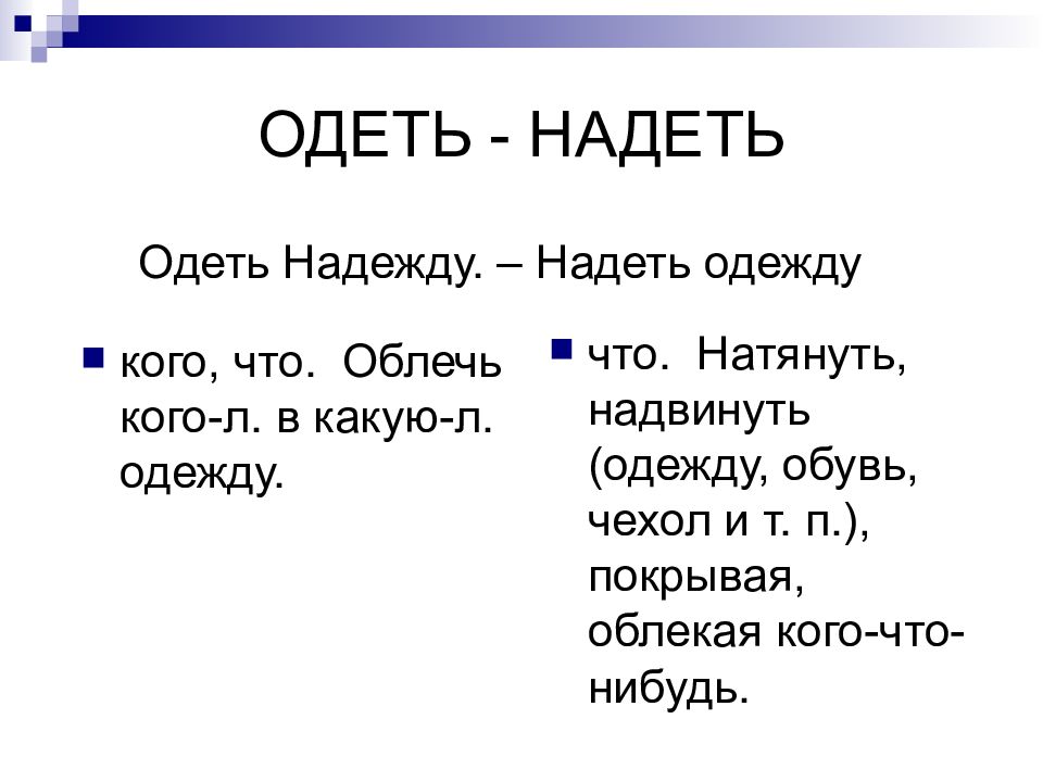Слайд 7: ОДЕТЬ - НАДЕТЬ