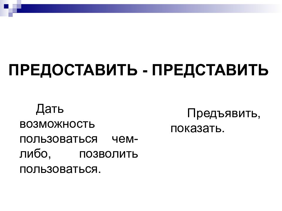 Слайд 4: ПРЕДОСТАВИТЬ - ПРЕДСТАВИТЬ