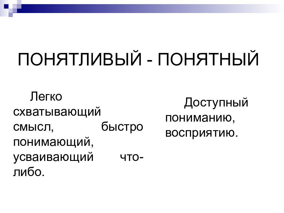Слайд 9: ПОНЯТЛИВЫЙ - ПОНЯТНЫЙ