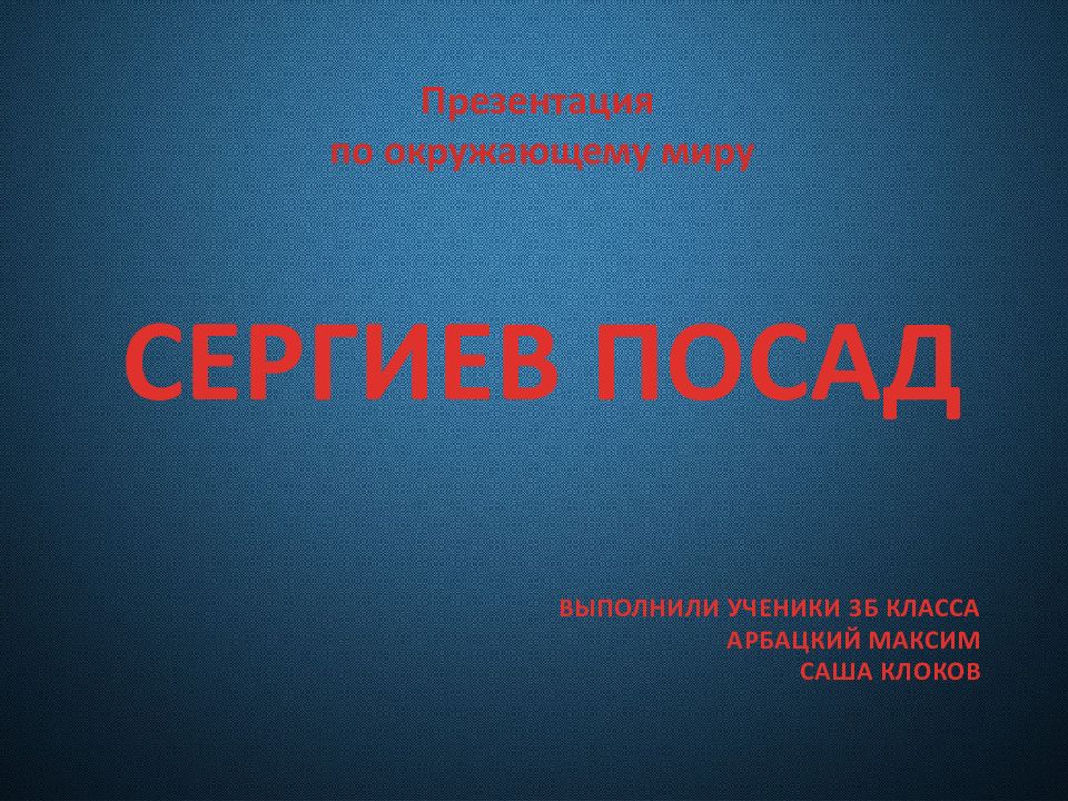 СЕРГИЕВ ПОСАД Презентация по окружающему миру ВЫПОЛНИЛИ УЧЕНИКИ 3Б КЛАССА АРБАЦКИЙ МАКСИМ САША КЛОКОВ