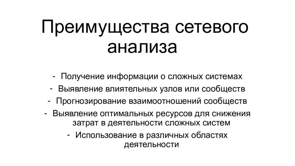 Слайд 5: Преимущества сетевого анализа