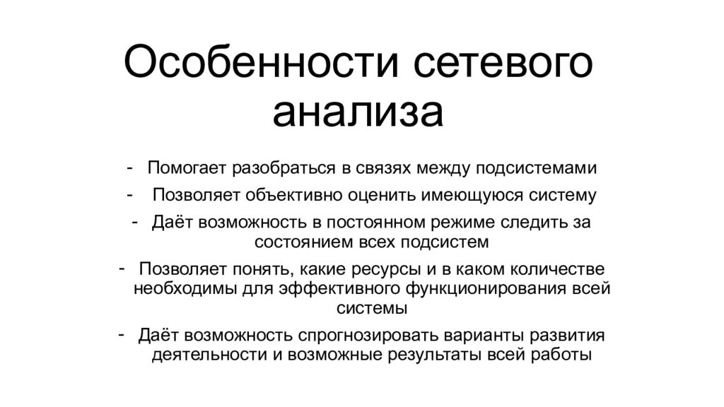 Слайд 4: Особенности сетевого анализа