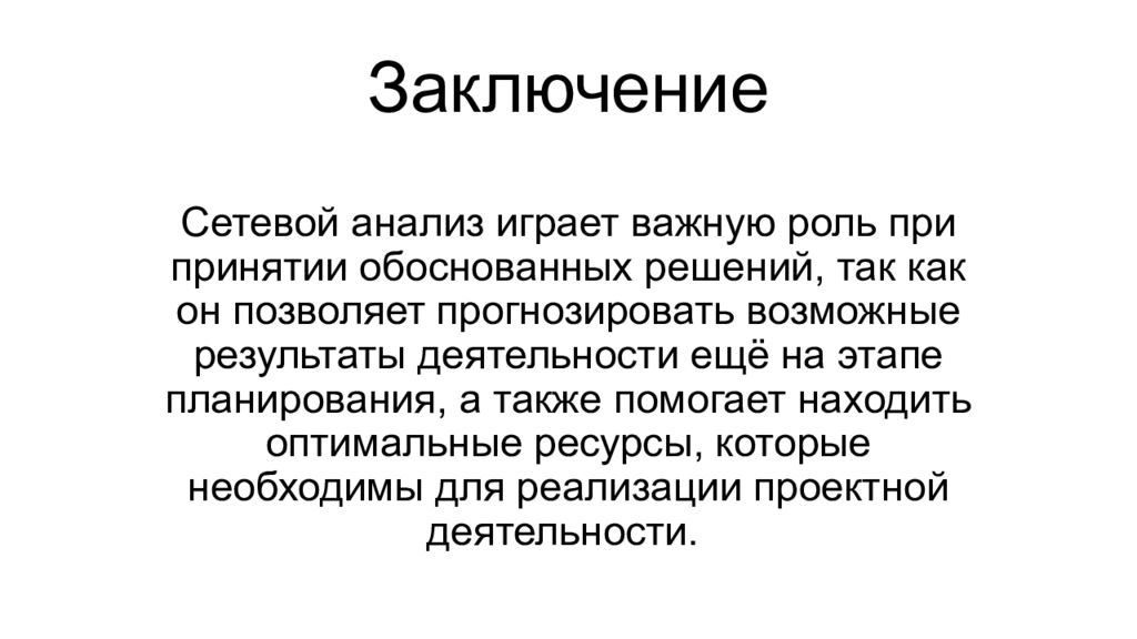 Последний слайд презентации: Сетевой анализ: Заключение