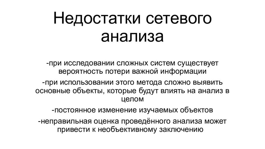 Слайд 6: Недостатки сетевого анализа