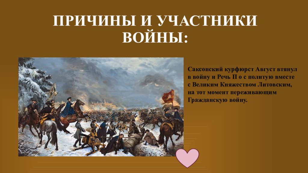 Саксонский курфюрст Август втянул в войну и Речь П о с политую вместе с Великим Княжеством Литовским, на тот момент переживающим Гражданскую войну.