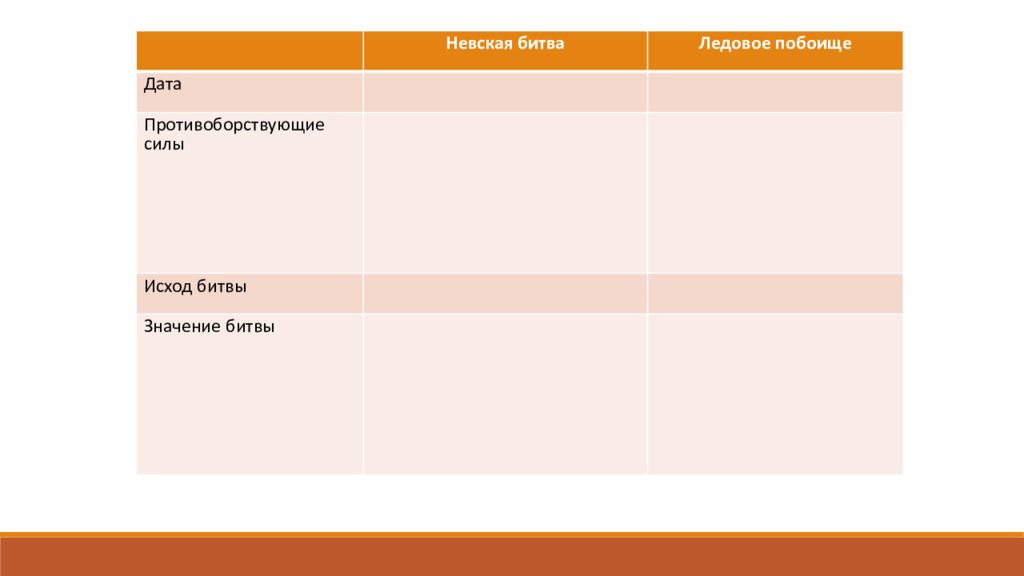 Невская битва Ледовое побоище Дата Противоборствующие силы Исход битвы Значение битвы