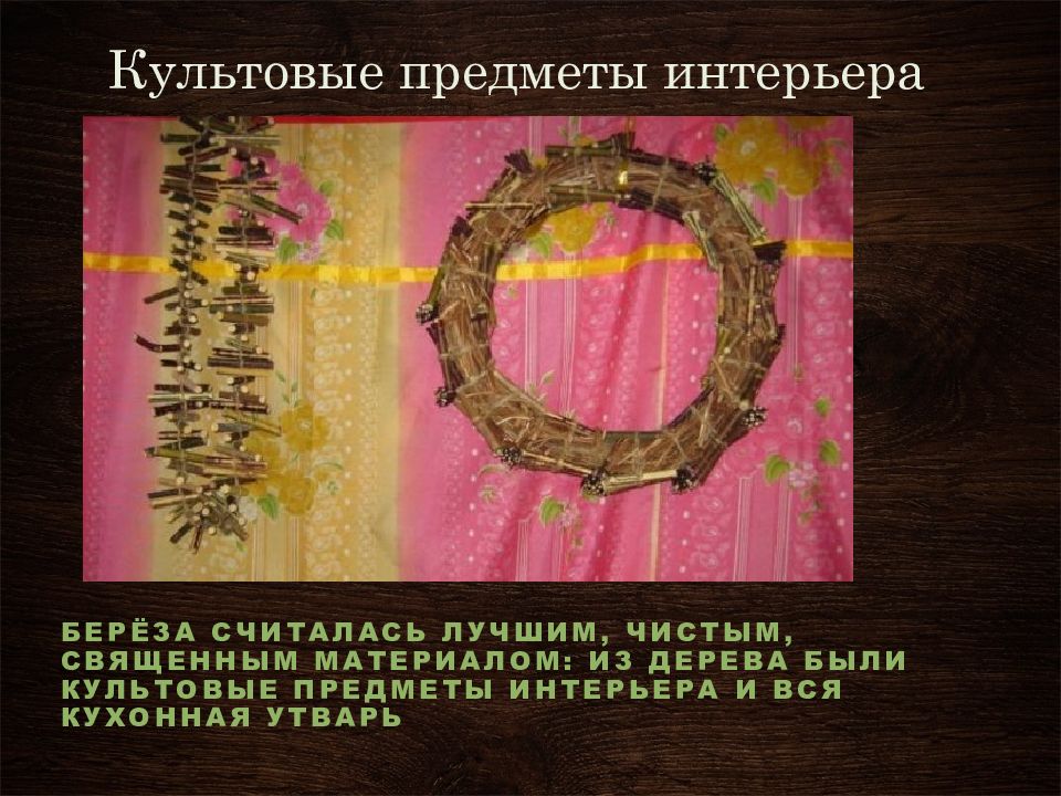 Берёза считалась лучшим, чистым, священным материалом: из дерева были культовые предметы интерьера и вся кухонная утварь