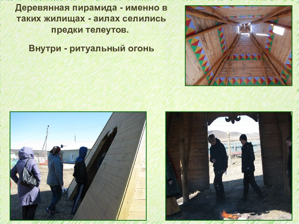 Деревянная пирамида - именно в таких жилищах - аилах селились предки телеутов. Внутри - ритуальный огонь