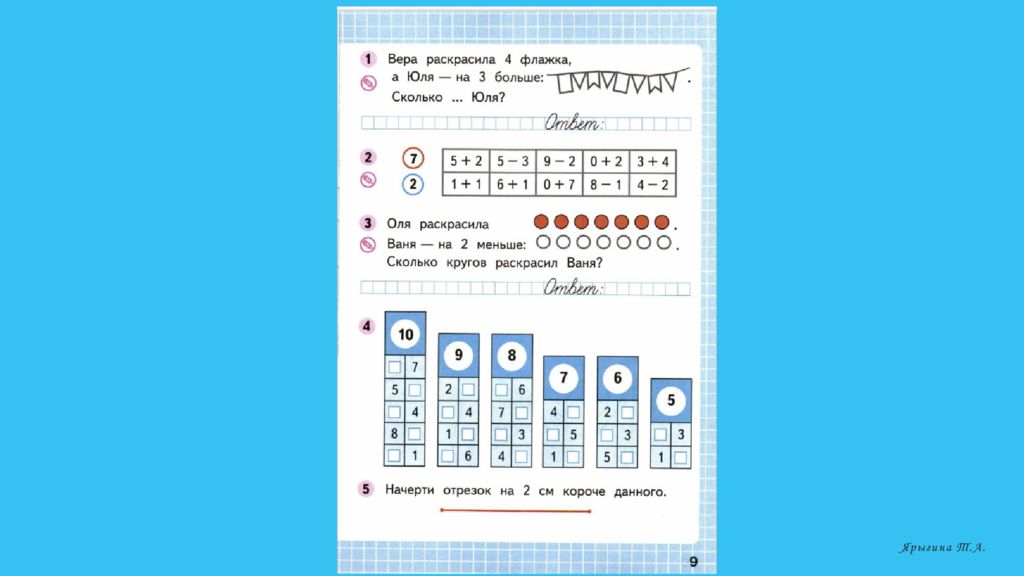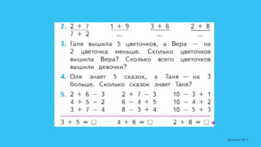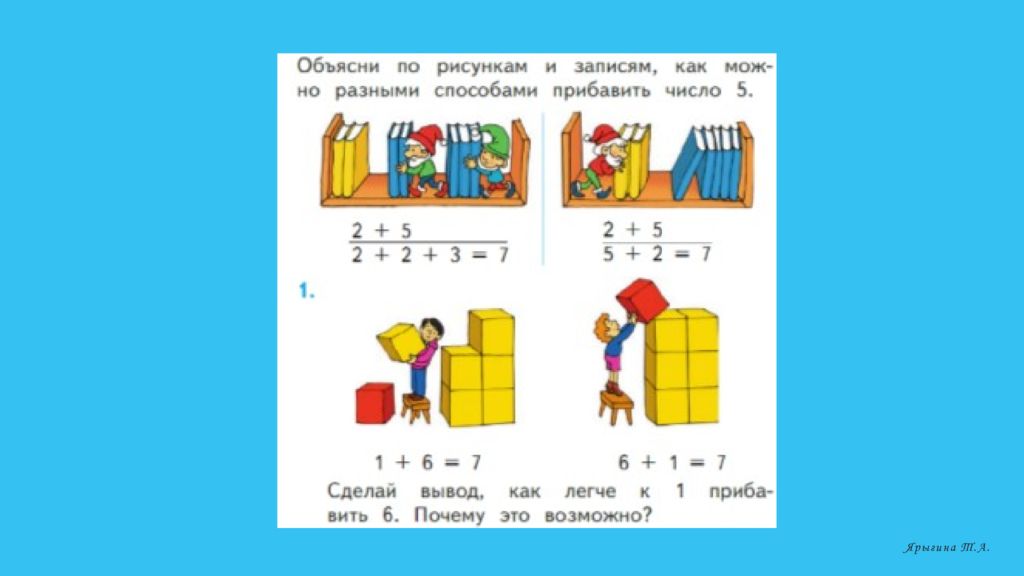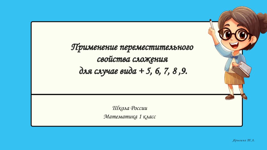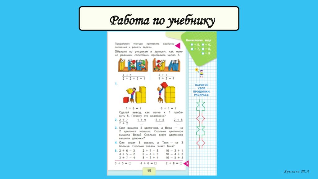 Школа России Математика 1 класс Ярыгина Т.А. Применение переместительного свойства сложения для случае вида + 5, 6, 7, 8,9.