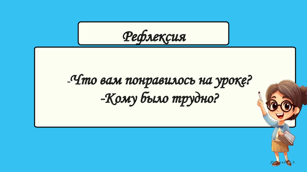 Рефлексия - Что вам понравилось на уроке ? - Кому было трудно ? Ярыгина Т.А.