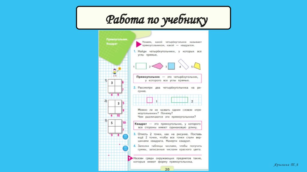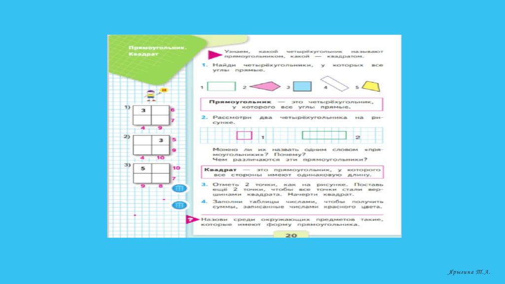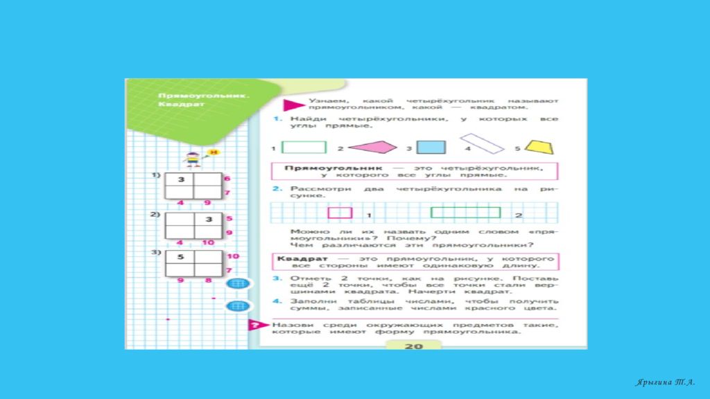 Школа России Математика 1 класс Ярыгина Т.А. Прямоугольник. Квадрат.