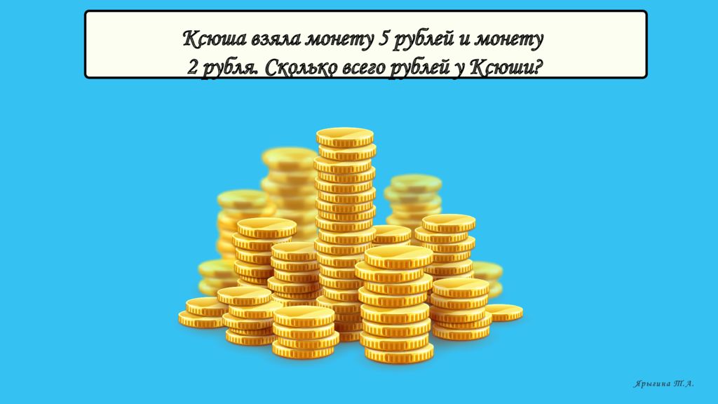 Ксюша взяла монету 5 рублей и монету 2 рубля. Сколько всего рублей у Ксюши ? Ярыгина Т.А.