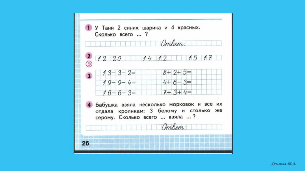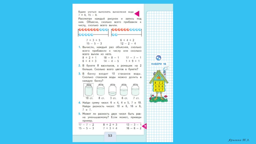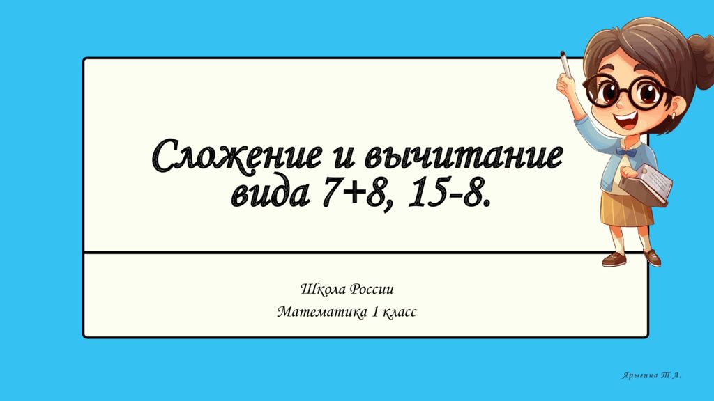 Школа России Математика 1 класс Ярыгина Т.А. Сложение и вычитание вида 7+8, 15-8.