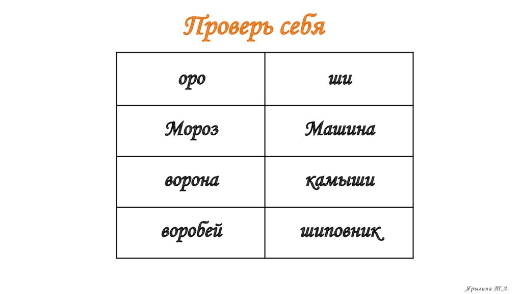 оро ши Мороз Машина ворона камыши воробей шиповник Проверь себя Ярыгина Т.А.